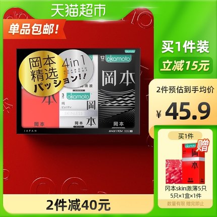 天猫超市65.9元,可领10元优惠券,实付55.9元到手,是正价65.9元的8.5折;冈本日本进口超薄避孕套,冈本超薄迷情装装,4合1,四个体验,轻盈纤薄,仿若无感。