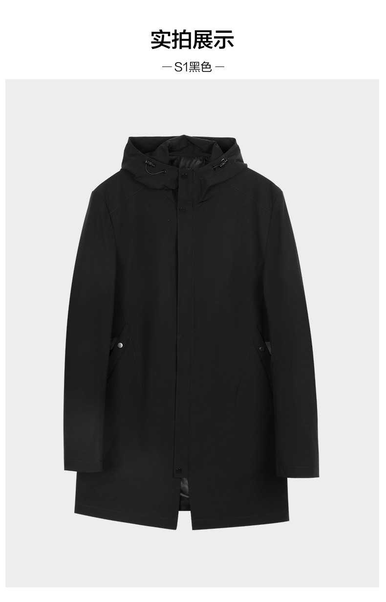 这款 红豆男装 2021新款春装 男士简约中长款连帽风衣外套TDXIOF014S,采用89%锦纶+11%氨纶面料,爽滑微弹,挺括有型,手感细腻舒适,耐磨耐洗,拉链纽扣双门襟,贴身有型,适合各种场景穿。