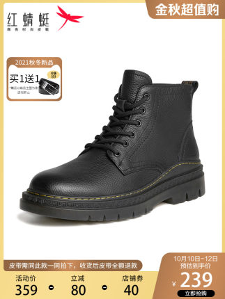 【红蜻蜓品牌旗舰店】潮流时尚,酷感十足~红蜻蜓马丁靴!经典英伦风款式,上脚超有型~鞋面是软糯牛皮材质的,舒适好穿,质感十足!配休闲裤、小脚裤都超帅气!【赠送运费险】
