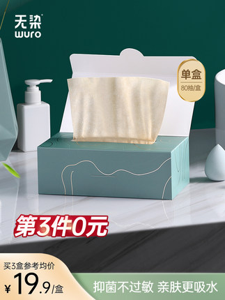 天猫wuro无染旗舰店29.9元,拍3件可领50元优惠券,实付39.8元到手,共到手3盒,单盒80抽。无染竹浆洗脸巾,不漂白、不添加、无荧光,纯天然竹纤维制成,比毛巾更卫生,比棉质更天然,柔滑而耐拉扯,天生细密多孔,吸水能力超强,天然抑菌,呵护敏感肌肤。