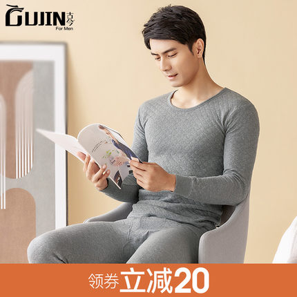 中华老字号,GUJIN 古今 男士三层加厚保暖内衣套装 三色59.9元包邮