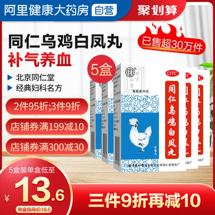 阿里健康大药房 同仁堂 乌鸡白凤丸 300粒/36g*5盒 补肝肾正阳虚 58元包邮