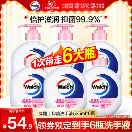 双11预售~ 威露士 健康抑菌洗手液 525ml*6瓶 券后49.9元包邮