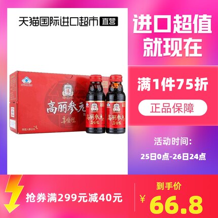 韩国正官庄进口高丽参元饮品100ml*10瓶 7.5折+券后56.75元包邮