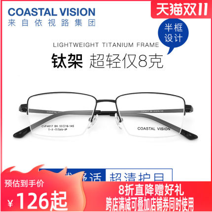 1.60适合散光+近视不超过600度,多款造型镜框可选,目前天猫COASTALVISION镜宴旗舰店售价756元,下单1件享9折,领取395元优惠券,实付到手285.4元顺丰包邮,店铺预售,付款后7天内。