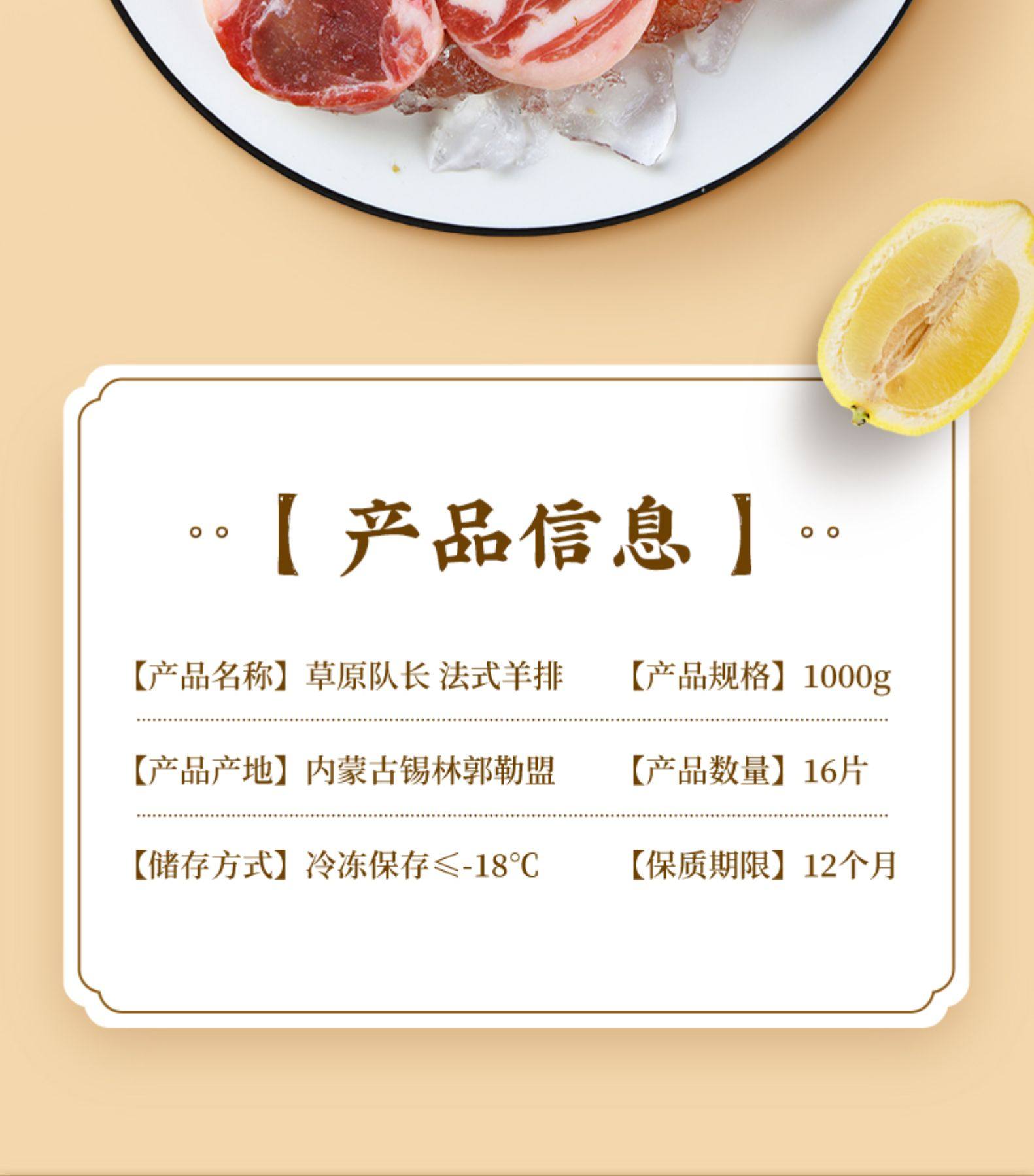 草原队长 内蒙古新鲜法式战斧羊排16片1000g 新低118元包邮
