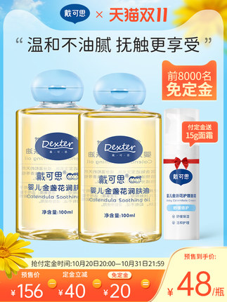DEXTER 戴可思 婴儿金盏花润肤油 100ml*2瓶 96元(包邮,需20元定金,1日付尾款,满减)