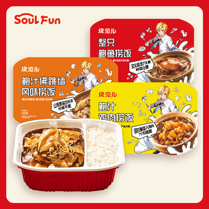 百胜中国旗下 烧范儿自热米饭 方便速食3盒组合装售价129元,1日0-2点62元包邮。百胜中国旗下,源自米其林推荐餐厅的美味,鲜炖鲍汁,文火高汤7头鲍,鲜香汁浓味美,高汤足料,免煮15分钟即食。共有整只鲍鱼、鲍汁佛跳墙、鲍汁鸡肉3种口味,米包110g+菜肴包220g,大分量一次吃饱,自热超方便。