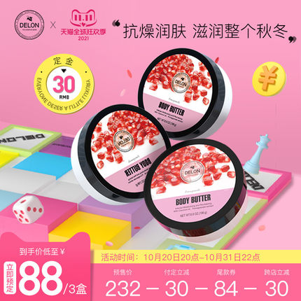双11预售,加拿大国民品牌~ Delon迪朗贝斯 红石榴精粹身体润肤乳 196gx3罐 定金+券后52元入手(之前196gx2罐装值哭价59元)