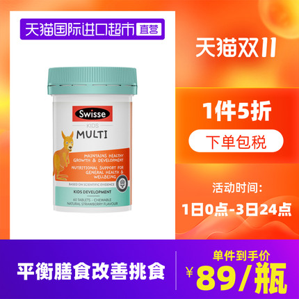天然草莓果味,补充儿童22种营养。目前商家天猫国际进口超市现售价178元,双11期间下单1件5折优惠,领取40元优惠券,实付49元包邮包税,还可叠加88会员到手更划算。Little Swisse 儿童复合维生素咀嚼片,专门为2岁以上的儿童设计的22种专用维生素,不含任何谷蛋白、甜味剂、人工色素和香料。提供他们每日所需的多种维生素、矿物质及抗氧化元素,减少宝宝因偏食,挑食导致的营养不良,促进食欲,帮助骨骼生长,助力智力发育,增强免疫力,使宝宝健康成长和发育。
