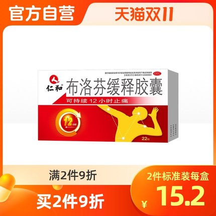 仁和 布洛芬缓释胶囊 22粒/盒 靠谱的非处方止疼药 13.8元狂欢价