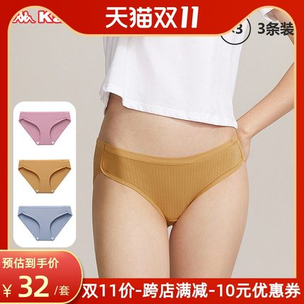50S日系螺纹抗菌内裤女,全棉舒适,透气内档,柔顺光洁,性感提臀, 无痕透气高弹。目前天猫商城kappa内衣旗舰店3条装售价¥49,可使用¥10优惠券,实付¥39包邮,降10元新低价,3款组合色可选。