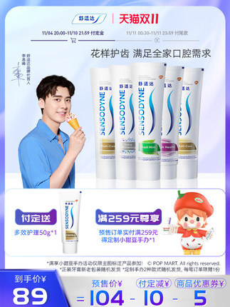 舒适达 抗敏感牙膏 全面护理家庭套装 5支装共490g 84元预售价 加赠50g 定金20元