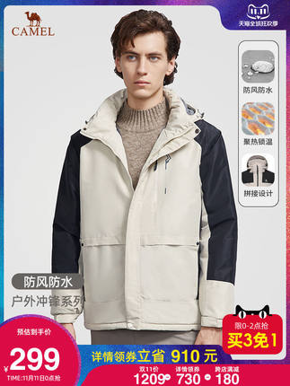 这款 冲锋衣外套,三层复合夹棉锁温,外层高密面料结合微孔防水薄膜,防风防泼水,户外出行无惧雨水侵袭。骆驼服饰旗舰店1209元,可领980元优惠券,实付229元到手。