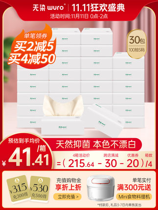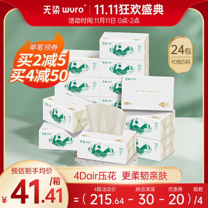 无染新升级,选天然原竹,真正有效抑制细菌滋生,0漂白0杂浆0荧光剂,亲肤柔韧,湿水不易破,撕开无尘屑,宝宝也可用。目前天猫商城wuro无染旗舰店售价¥59.9,可使用¥30优惠券,实付¥29.9包邮,规格:3层90抽*24包。