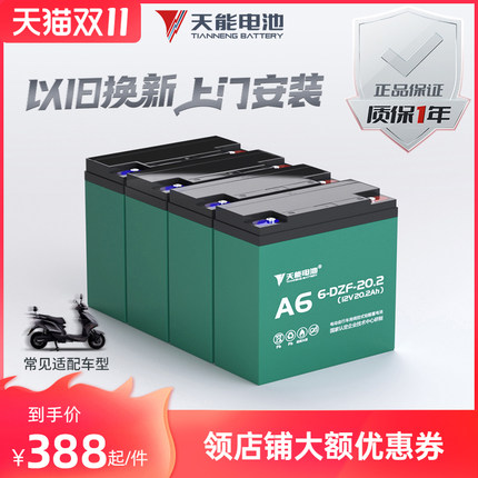 天能电池经典款,A6稳定更耐用,电动助力车用阀控式铅酸蓄电池,高效驻能,性能稳定,提升电池耐腐蚀性和导电性,此款目前活动售价568元,下单领取满300减180元优惠券,实付低至388元