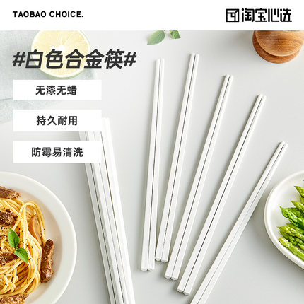 淘宝心选 白色竹节纹防滑防烫家用合金筷子 10双 9.9元包邮