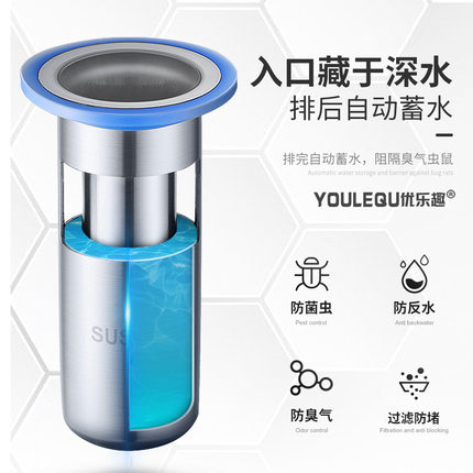 清清美地漏防臭器下水道盖反味防虫神器卫生间厕所密封塞地芯2个,浴室毛发水槽防堵口器