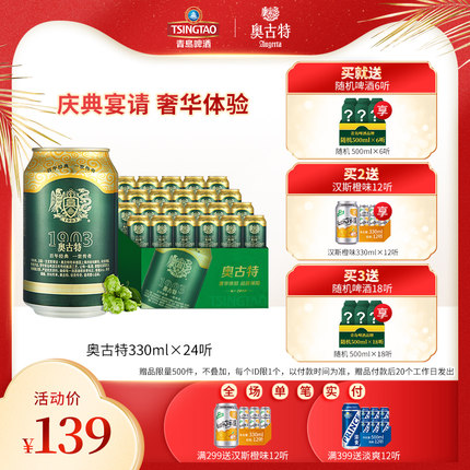 青岛啤酒 奥古特 经典1903 大麦酿造高端啤酒330mL*24罐 送青岛啤酒随机500mL*6罐 114元包邮