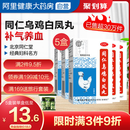 阿里健康大药房 同仁堂 乌鸡白凤丸 300粒/36g*5盒 补肝肾正阳虚 58元包邮