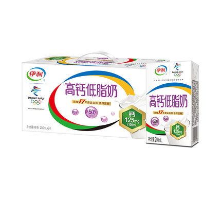 伊利 无菌砖高钙低脂牛奶 250ml*24盒 59.9元包邮