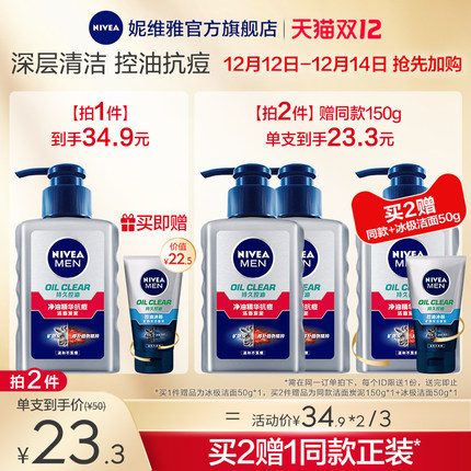 妮维雅 男士控油祛痘洗面奶 150ml 送50g洁面泥 14.9元包邮
