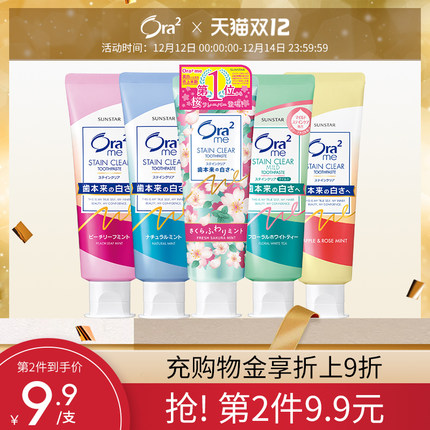 =39.47元 到手,共140g*2支。有鲜桃薄荷 140g、沁香粉樱 130g、莱莉茶香 125g、天然薄荷 140g、玫瑰果香 140g。这款皓乐齿 ora2 果味天然薄荷牙膏,日本原装进口,是日本药妆店的热销爆款产品,适合对美白、口气、产品使用感和舒适度要求比较高的顾客使用。牙膏中的抑制牙渍配方,能去除因茶、咖啡、抽烟、咖喱食物等造成的牙渍,并形成牙渍保护层,恢复牙齿原本亮白的颜色。