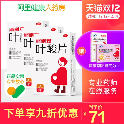 =55.2元 到手,共31片*3盒,预防出生缺陷的标准叶酸。PS:若想在孕期长期服用,需要咨询医生。这款斯利安 孕妇叶酸片,标准含量0.4mg,能预防胎儿先天性神经管畸形,是女性备孕期、孕期和哺乳期的必备服用药品,线下药店也有售。