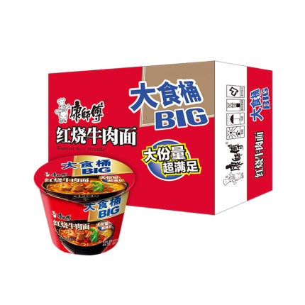 康师傅 大食桶 经典红烧牛肉方便面 143g*12桶整箱新低31.9元包邮