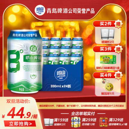 这款崂山8度啤酒,采用著名崂山泉水和大麦(澳洲麦、加拿大麦、法国大麦)、啤酒花、大米、酵母为原料酿制而成,麦汁浓度8°P。崂山啤酒旗舰店44.9元,可领10元优惠券,实付34.9元到手,规格330mL*24听整箱装。