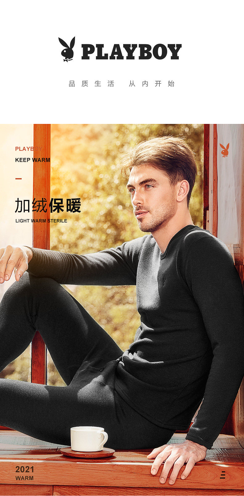 花花公子加厚加绒保暖套装,保暖东丽热绒,蓄热保暖,3层热绒蓄暖,聚热保暖恒温,耐磨,不起球,不掉色,不显臃肿。