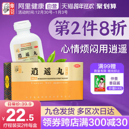 目前360丸(最后1款)天猫商城阿里健康大药房售价¥25,叠加¥5优惠券,券后实付¥20包邮,入手好价,精选优质柴胡、当归、白芍、茯苓等中药成分,主要用于疏肝健脾、养血调精,用于肝气不舒所致的月经不调,胸胁胀痛,头晕目眩等症状。直接口服,一次8丸,一日3次即可。