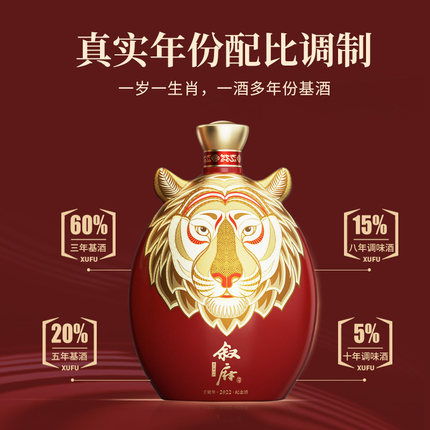店铺预售!年度新品发售,按订单先后顺序30个工作日内发出,急单勿拍!40年川酒老品牌、宜宾第2大酒企出品,虎年生肖酒,限量5000坛,馈赠亲友,如虎添翼;心有猛虎,收藏把玩;宴请共饮,虎运全开。目前1.25L礼盒装天猫商城叙府旗舰店预售价¥699,可领取¥200优惠券,券后实付¥499包邮