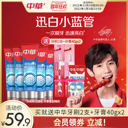 中华 魔丽迅白冰爽牙膏套装9件(冰爽100g*5支+牙刷*2支+牙膏40g*2支)29.9元包邮