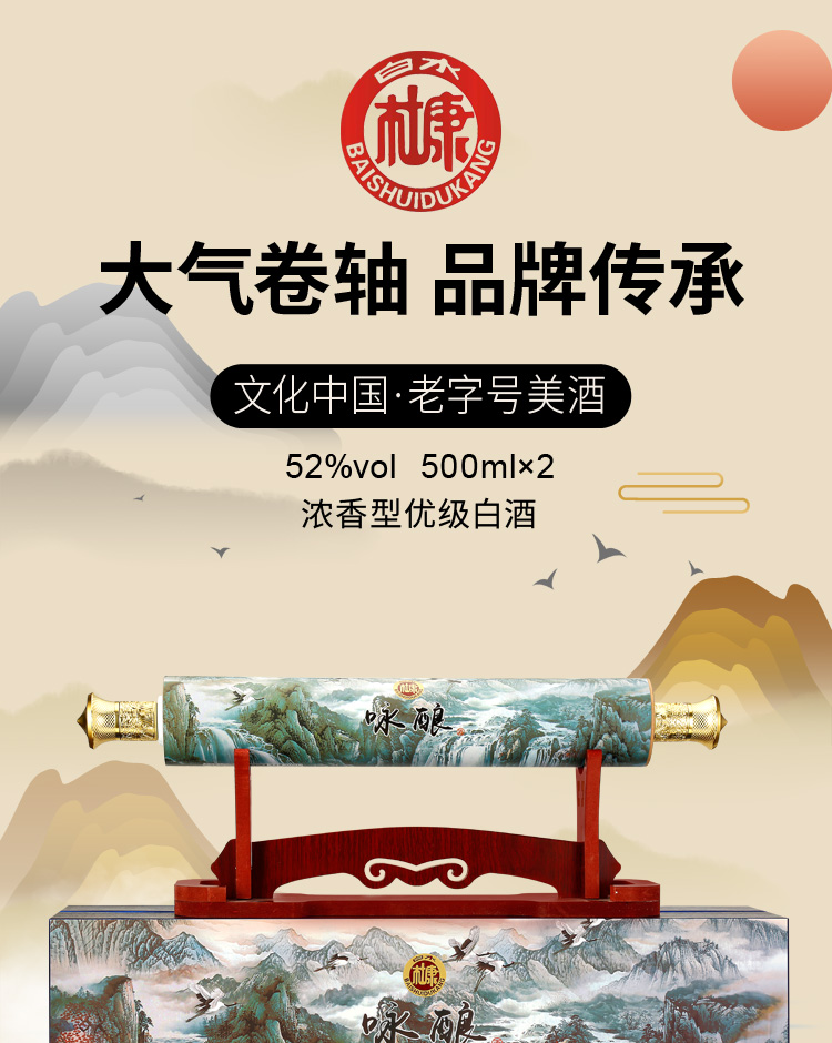 19¥4GG620wCcwi¥ https://m.tb.cn/h.f8ffbpZ A白水杜康咏酿山水酒 浓香型白酒52度礼盒装送礼500ml*2瓶送木架