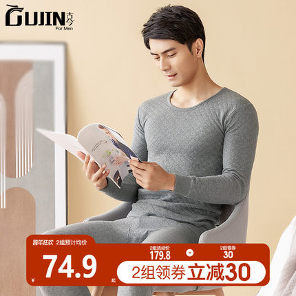古今 男士 100%纯棉 3层夹棉保暖内衣套装 59.9元包邮