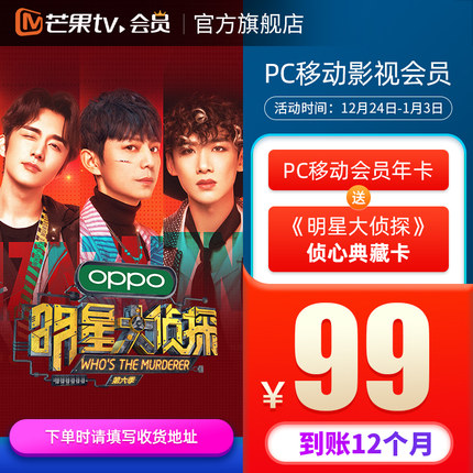 芒果TV 会员VIP年卡12个月+赠《明星大侦探》80张典藏卡(可兑换80天会员)99元秒充