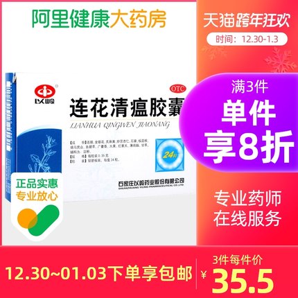 以岭 连花清瘟胶囊 24粒*3盒 家庭常备风热感冒药 39.3元跨年价
