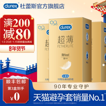 杜蕾斯 焕金隐feel 超薄避孕套 18只 39.9元包邮 保密发货
