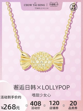 周大生 金色糖果锁骨链 S925银吊坠 情人节礼物 159元礼遇价