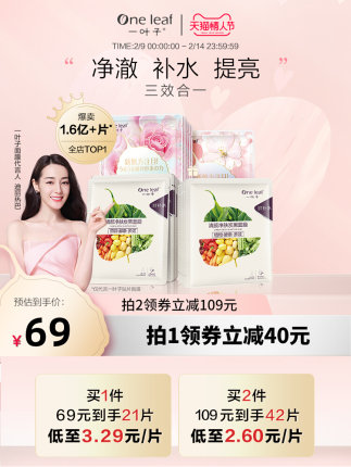 【一叶子】鲜嫩水光面膜整盒21片 券后39元包邮