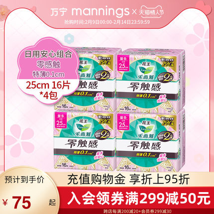 日本花王技术,零触感特薄0.1cm,瞬间吸收,感觉不到姨妈来。目前天猫万宁官方旗舰店售价75元,叠加领取27元优惠券,实付到手48元包邮,入手好价。