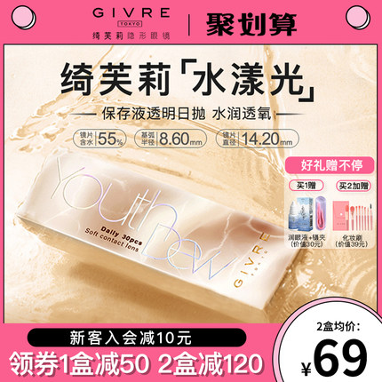 来自日本的高人气隐形眼镜品牌,水漾光玻尿酸保存液日抛30片,灭菌独立包装,抗UV材质,55%含水量,水润透氧,长时间佩戴眼睛也不干涩。目前天猫商城绮芙莉旗舰店日抛30片聚划算团购价¥129,领取¥70优惠券,到手实付¥59包邮,多度数可选
