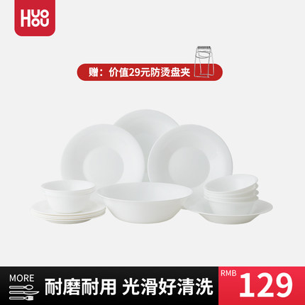 小米有品 火候 玉白钢化玻璃餐具15件套 HU0203 赠防烫盘夹 124元包邮