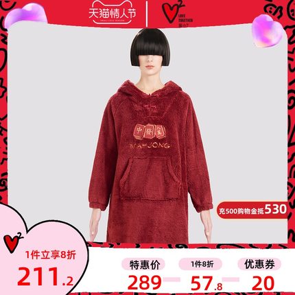 白菜!DAPU 大朴 A类标准中国风绣花舒棉绒连帽睡袍 新低69.2元包邮