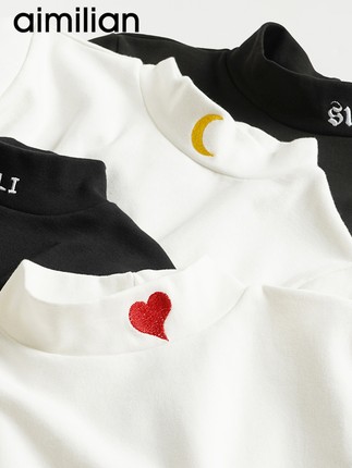 艾米恋 加绒纯棉刺绣半高领打底衫 39元包邮