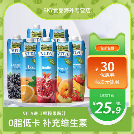 VITA欧洲进口鲜榨纯果蔬汁1L 拍4件 券后39.6元包邮