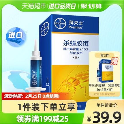 拜乐旗舰店39元,可领20元优惠券,实付19元到手;去年多次推荐的热销品牌蟑螂药,多个大众熟知的品牌使用此款商品如和谐号、美的、汇源、中粮和国家电网等。规格:5g,使用范围30-50㎡。
