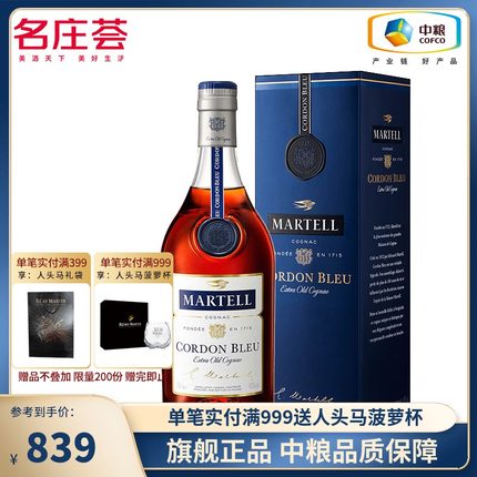 马爹利Martell蓝带干邑白兰地500ml XO级法国洋酒 839元包邮,劵后