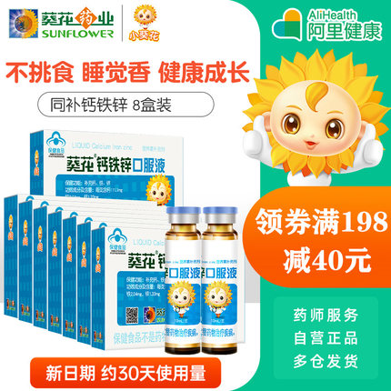 葵花品牌,钙铁锌口服液儿童成长补钙,宝宝葡萄糖酸钙锌口溶液,一支补钙铁锌三样,每支含钙111.1mg、铁2.04mg、锌1.33mg液体钙易吸收。液体钙溶解度好,钙离子更易被吸收。适合儿童、孕妇、乳母等补充营养。旗舰店发货,品质靠谱。